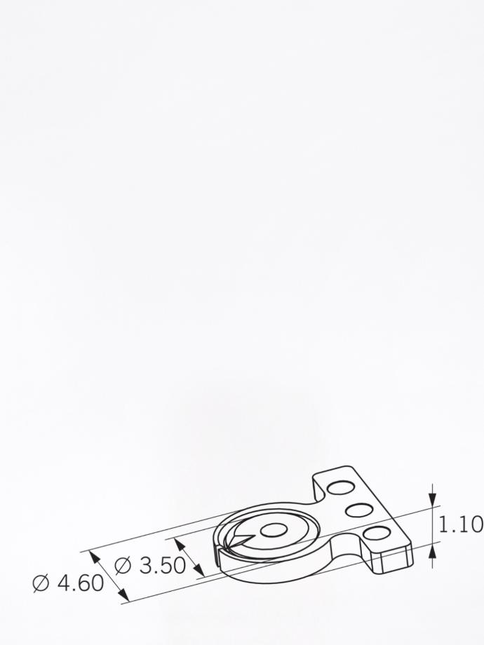 Pezzo completo del sistema di ancoraggio sovraradicolare cilindrico Eccentric composto da una femmina E in lega preziosa Elasticor®, ad elevata elasticità e priva di palladio, fissata nella parte anteriore direttamente nella protesi in resina tramite polimerizzazione. Il maschio O in lega preziosa OSV, che completa il sistema, garantisce ottime prestazioni in termini di resistenza meccanica.