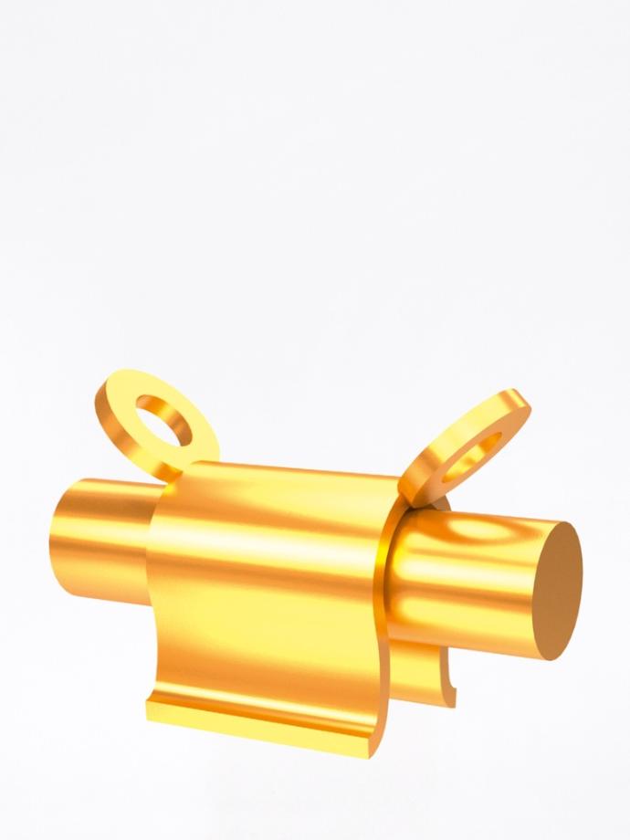 Ackermann-Bar B Femmina E è una delle due varianti della femmina della barra a profilo rotondo Ackermann. Realizzata in lega nobile gialla Elitor®, il cavaliere attivabile Femmina B presenta due guide a cerchio sui lati alti del profilo e si colloca sopra la barra maschio supportata dal filo di stagno per la resilienza, in alternativa alla Ackermann Femmina A.