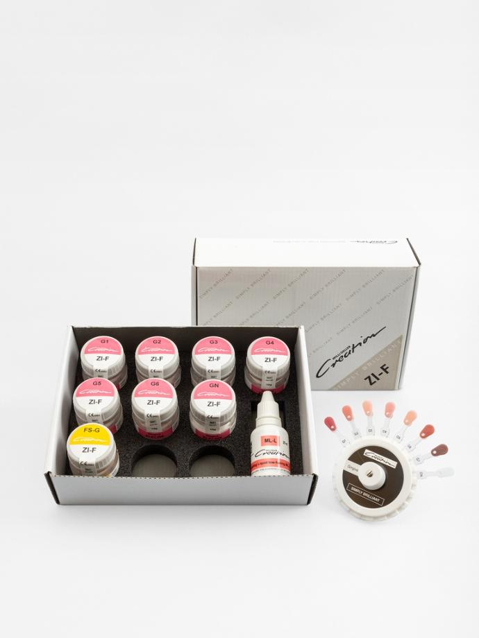 Creation ZI-F è una ceramica a basso punto di fusione ideale per eseguire rivestimenti e piccole stratificazioni su ogni tipo di armatura in Zirconia. Questa ceramica è ideale per la sua capacità di replicare riflessi luminosi naturali. Grazie al contenuto di feldspato, è molto resistente e garantisce un dinamismo luminoso naturale. La sua conformazione permette anche la correzione di veneer realizzati con la ZI-CT, poiché la temperatura di cottura della ZI-F è inferiore di ben 100° C.