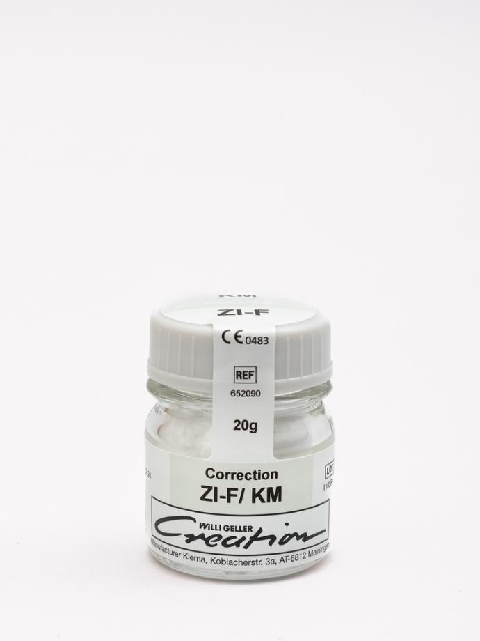 ZI-F/ Correction Powder è la massa di correzione di Creation Willi Geller per protesi su strutture ed armature realizzate in Ossido di Zirconio a basso punto di fusione che viene applicata successivamente alla cottura di correzione della ceramica, per definire un'armonia cromatica perfetta con i denti naturali e migliorare la traslucenza e la brillantezza.