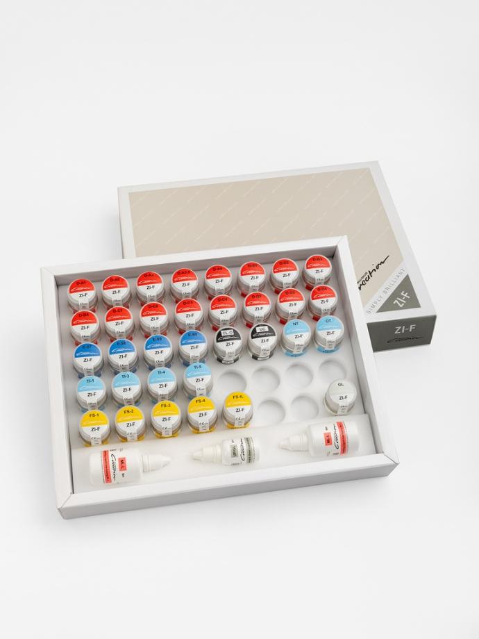 Creation ZI-F è una ceramica a basso punto di fusione ideale per eseguire rivestimenti e piccole stratificazioni su ogni tipo di armatura in Zirconia. Questa ceramica è ideale per la sua capacità di replicare riflessi luminosi naturali. Grazie al contenuto di feldspato, è molto resistente e garantisce un dinamismo luminoso naturale. La sua conformazione permette anche la correzione di veneer realizzati con la ZI-CT, poiché la temperatura di cottura della ZI-F è inferiore di ben 100° C.