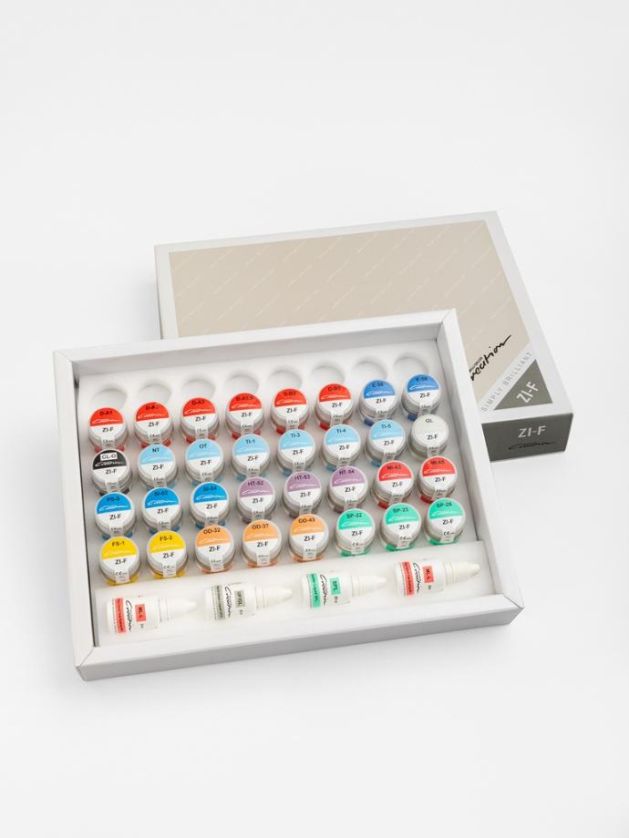 Creation ZI-F è una ceramica a basso punto di fusione ideale per eseguire rivestimenti e piccole stratificazioni su ogni tipo di armatura in Zirconia. Questa ceramica è ideale per la sua capacità di replicare riflessi luminosi naturali. Grazie al contenuto di feldspato, è molto resistente e garantisce un dinamismo luminoso naturale. La sua conformazione permette anche la correzione di veneer realizzati con la ZI-CT, poiché la temperatura di cottura della ZI-F è inferiore di ben 100° C.