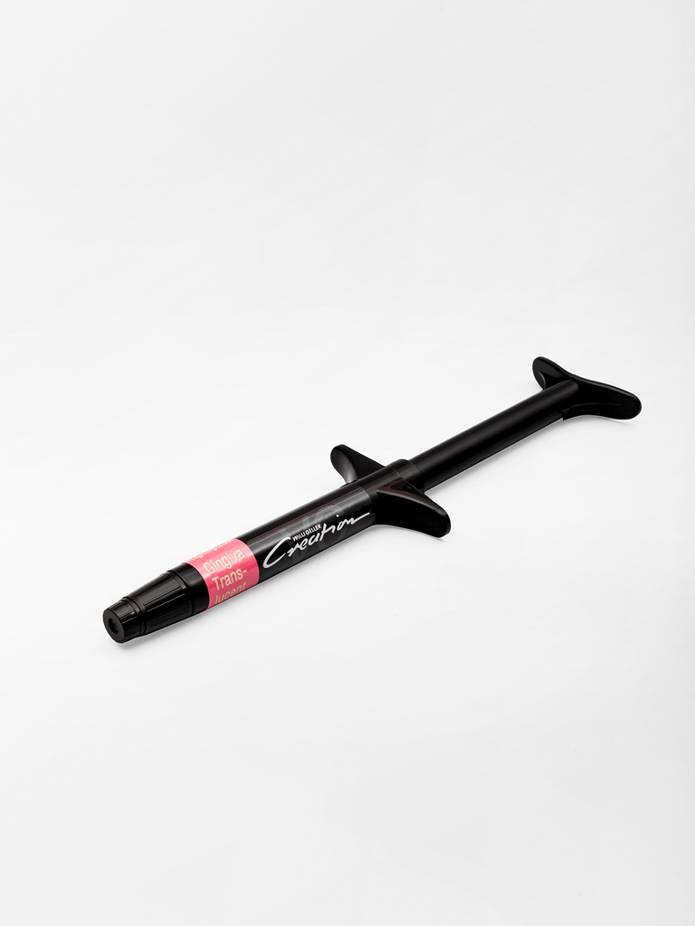 Creation VC/ Gengiva Translucent è un composito in pasta formulato per garantire la traslucenza della gengiva, grazie alle sue proprietà di lasciare passare la luce creando un effetto più realistico del restauro. Disponibile nel colore G3 rosa chiaro della Creation VC - Scala colori.