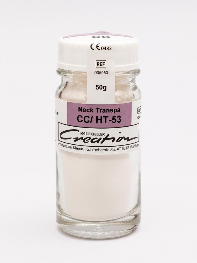 CC/ Neck Transpa è la massa ceramica di Creation che viene utilizzata per mantenere un effetto naturale e leggermente traslucido sul colletto del dente, simulando più fedelmente la transizione tra la gengiva naturale e il restauro protesico.