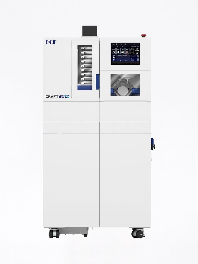 Craft 5X DC è una fresatrice a secco ed umido a 5 assi dotata di un caricatore cialde automatico fino a 10 unità per volta. Può fresare diversi tipi di materiali, tra cui: Zirconia, PMMA, Disilicato di Litio, Ceramica Ibrida e pre-milled in Titanio.