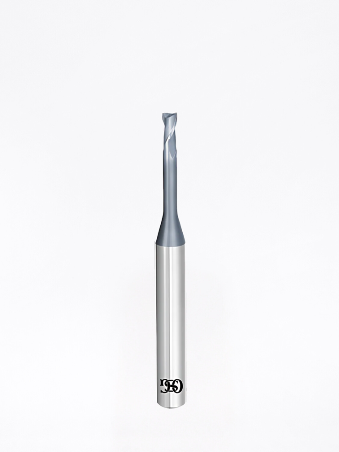 - Fresa sferica a 2 taglienti con collo lungo, per acciai con durezza fino a 52 HRC;