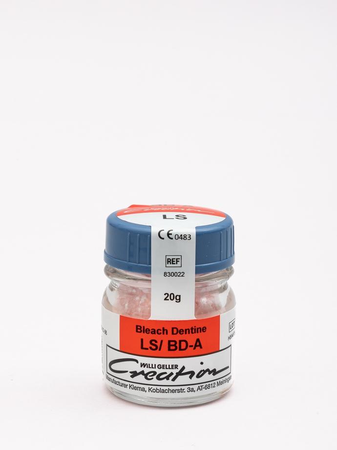 LS/ Bleach Dentina è una massa Creation Willi Geller per il Disilicato di Litio. La versione in "Bleach" conferisce una gradazione bianca luminosa che migliora l’aspetto estetico della dentina, ideale per ottenere un effetto più fluorescente.