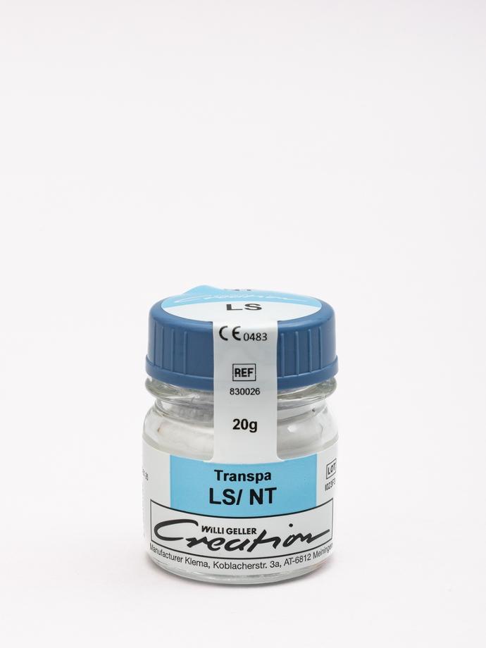 LS/ Transpa è la massa ceramica in polvere di Creation Willi Geller utilizzabile in fase di rifinitura prima della cottura adatta per esaltare la trasparenza nelle zone incisali e sottili del restauro, simulando l’aspetto del dente naturale.