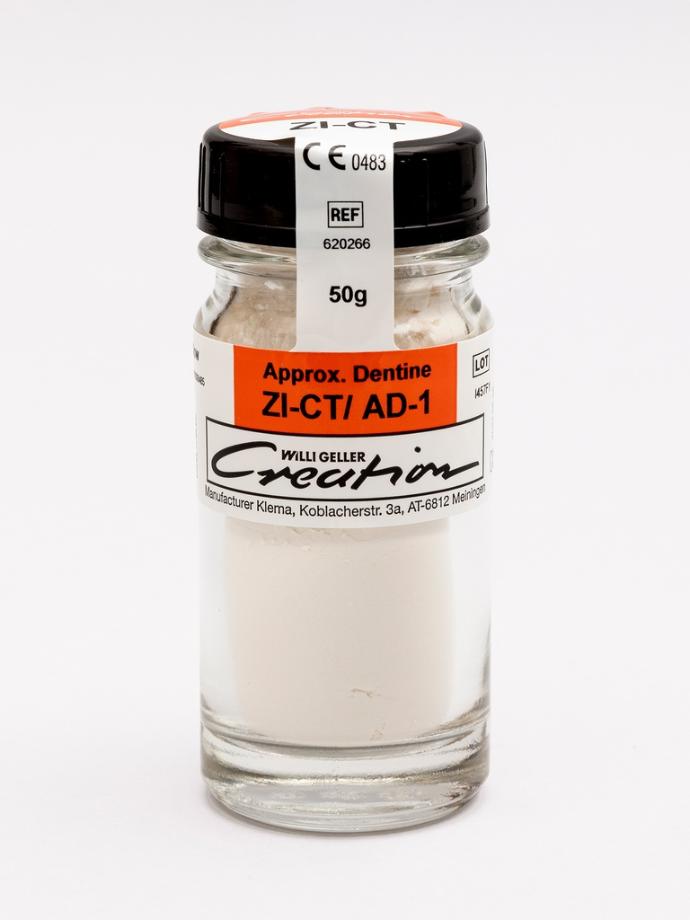 ZI-CT / Dentina Approssimale viene impiegata in maniera specifica su basi in Ossido di zirconio per la stratificazione dello spazio interprossimale ed è compatibile con massa ceramica Creation Willi Geller ZI-CT/ Dentina.